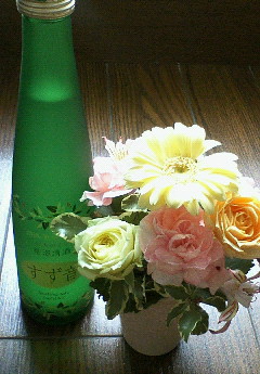 会場で頂いたお花と、乾杯に饗されたス/パーク/リン/グワイ/ンならぬ